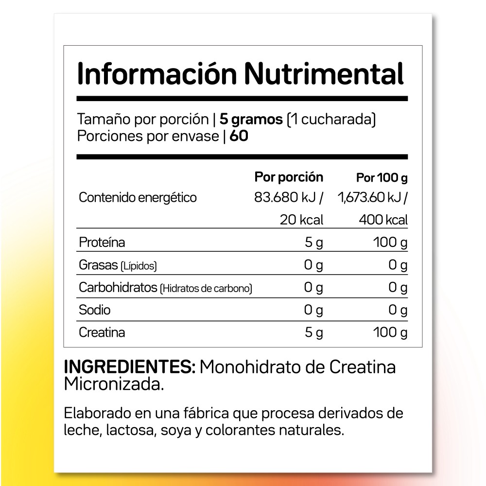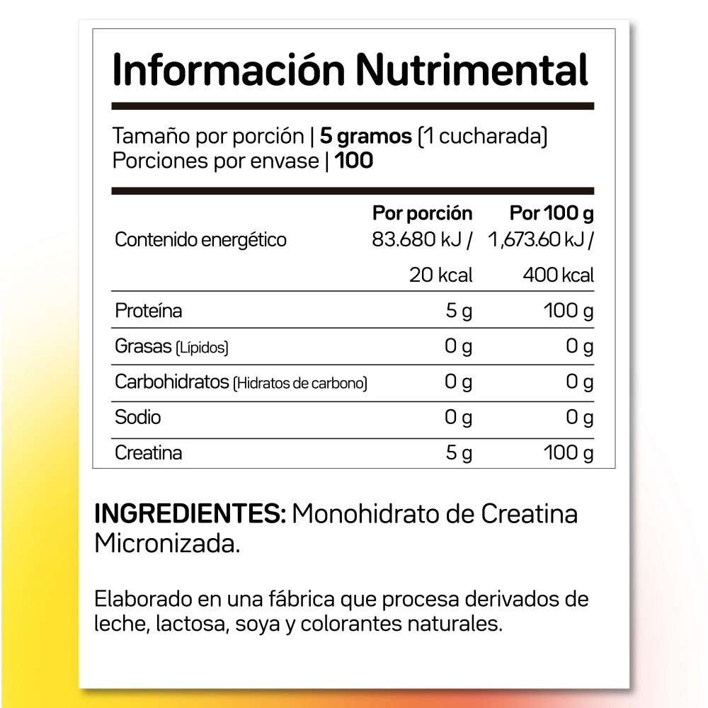 Creatina micronizada SIN sabor, lo que la hace excelente de tomarse con cualquier bebida (jugo, licuado de proteina o incluso solo con agua queda muy bien). Ya trae una cuchara medidora para la dosis diaria recomendada (5 grms).