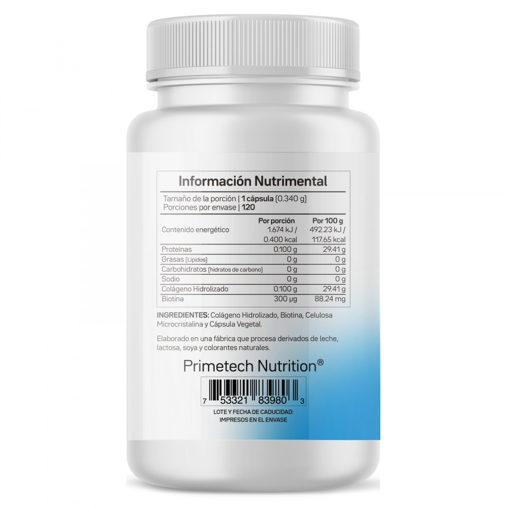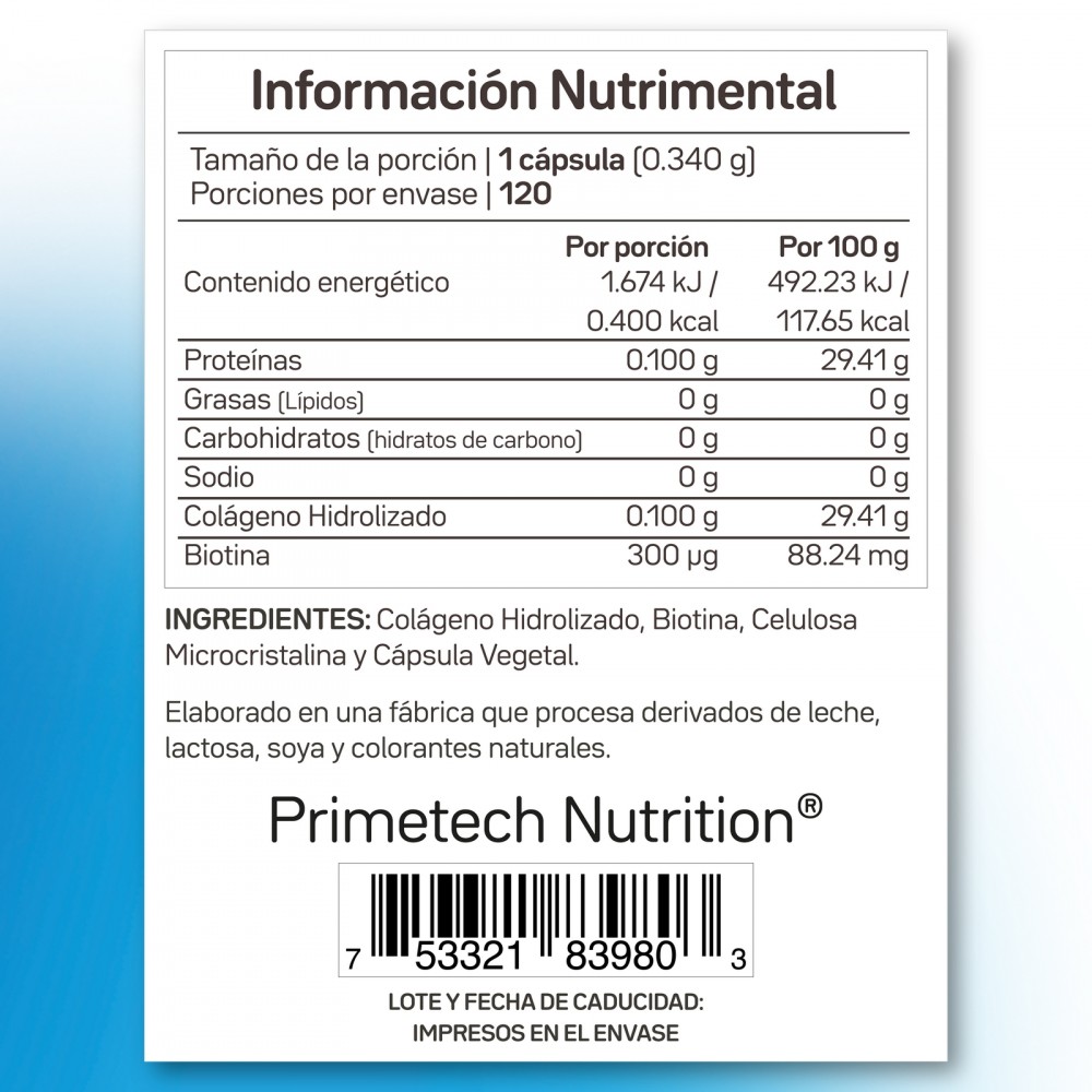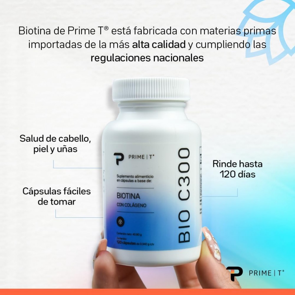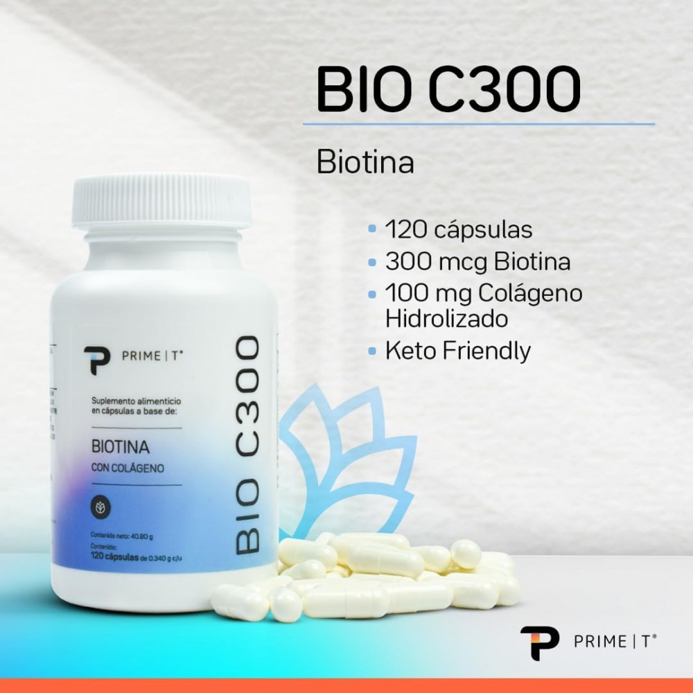 Biotina pura con colágeno 120 cápsulas con 300 microgramos cada una, BIO-C300 Primetech Nutrition