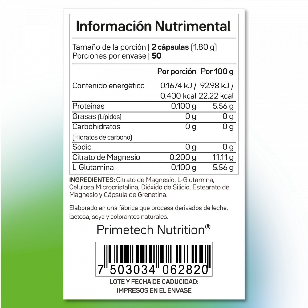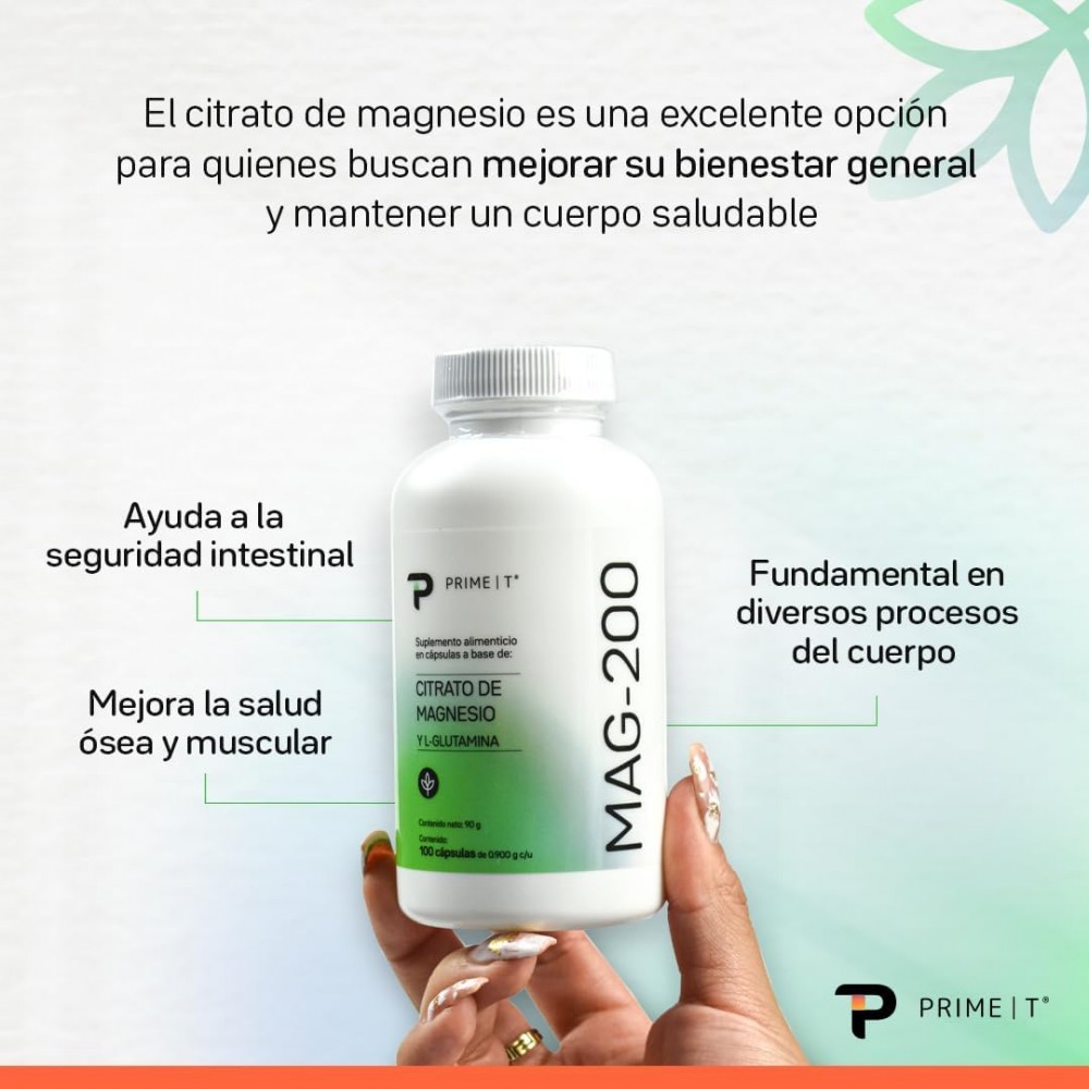 Citrato de Magnesio 50 porciones de 200 mg en cápsulas, alta pureza y absorción con ingredientes naturales MAG-200 Primetech Nutrition