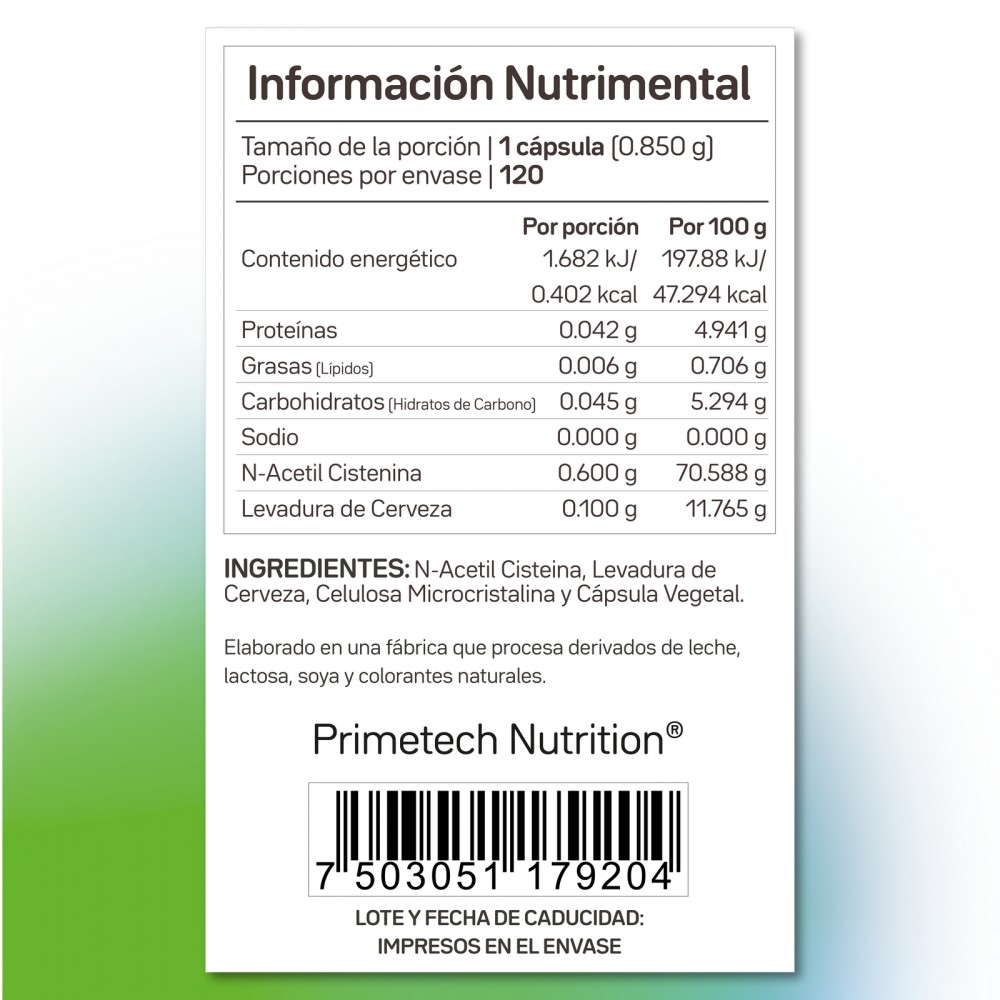 - Bienestar General:La combinación de NAC con la Levadura de Cerveza proporciona un soporte integral, favoreciendo el metabolismo y el sistema inmunológico a través del aporte de micronutrientes esenciales.