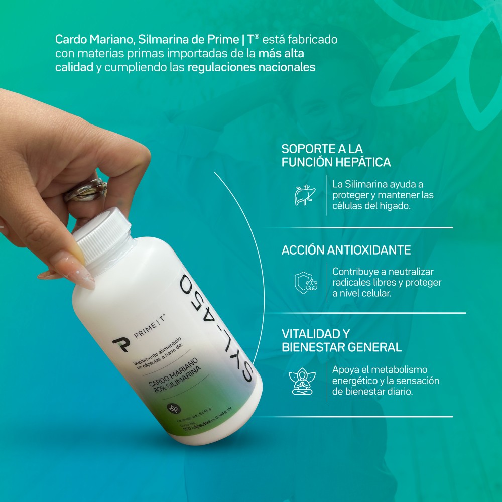 - Mantenimiento de la Función Hepática:La Silimarina ofrece soporte al hígado, órgano clave en la desintoxicación y el metabolismo, ayudando a mantener su funcionalidad en óptimas condiciones.