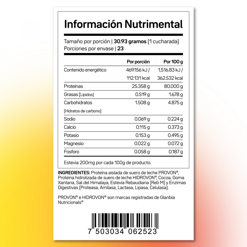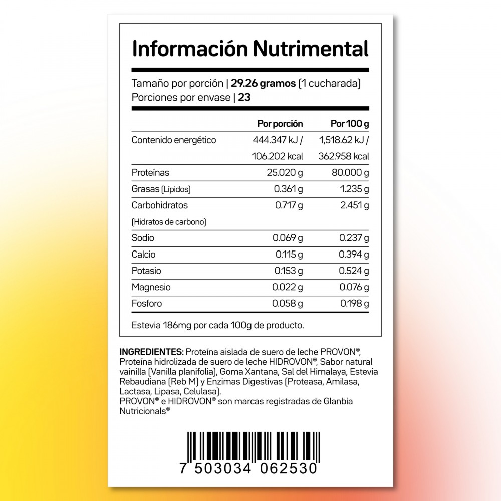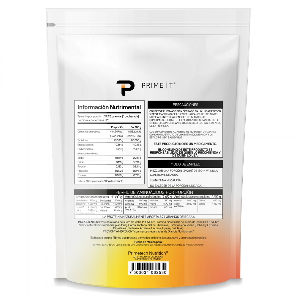 ISO-H es una fórmula con gran pureza y calidad que contiene proteína de suero de leche aislada Provon® 292 e hidrolizada Hydrovon®, ambas marca Glanbia Nutritionals® importada de Estados Unidos.